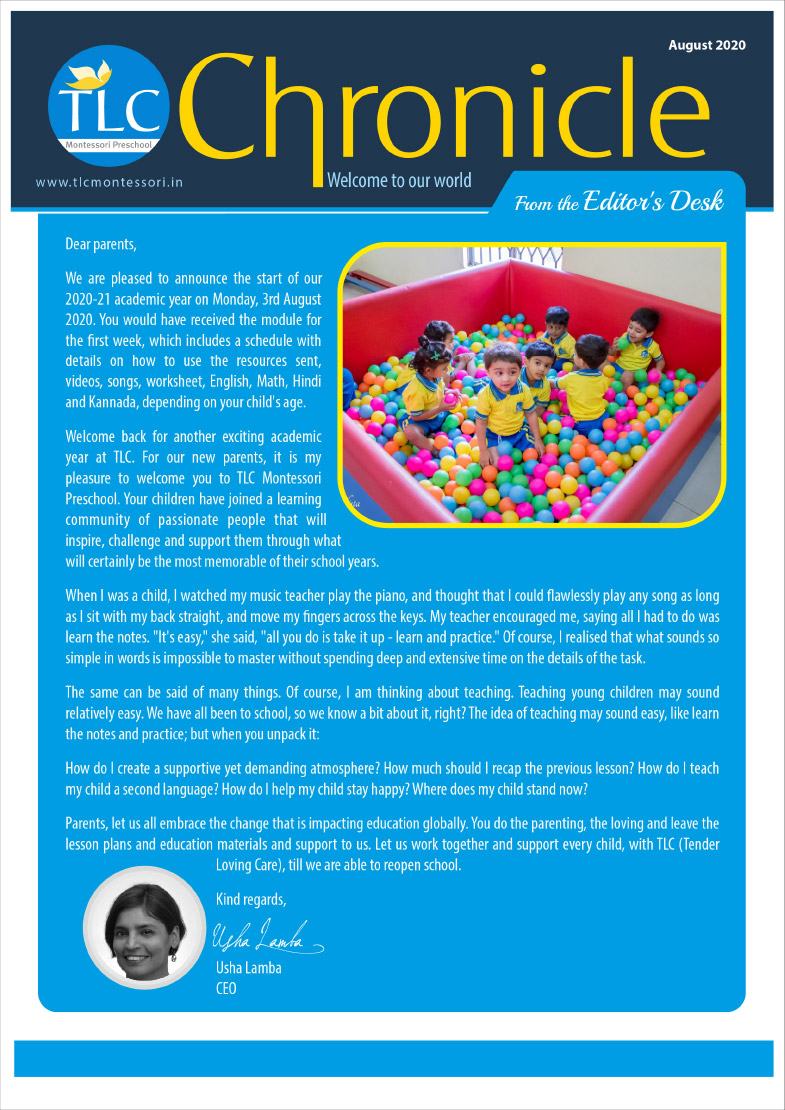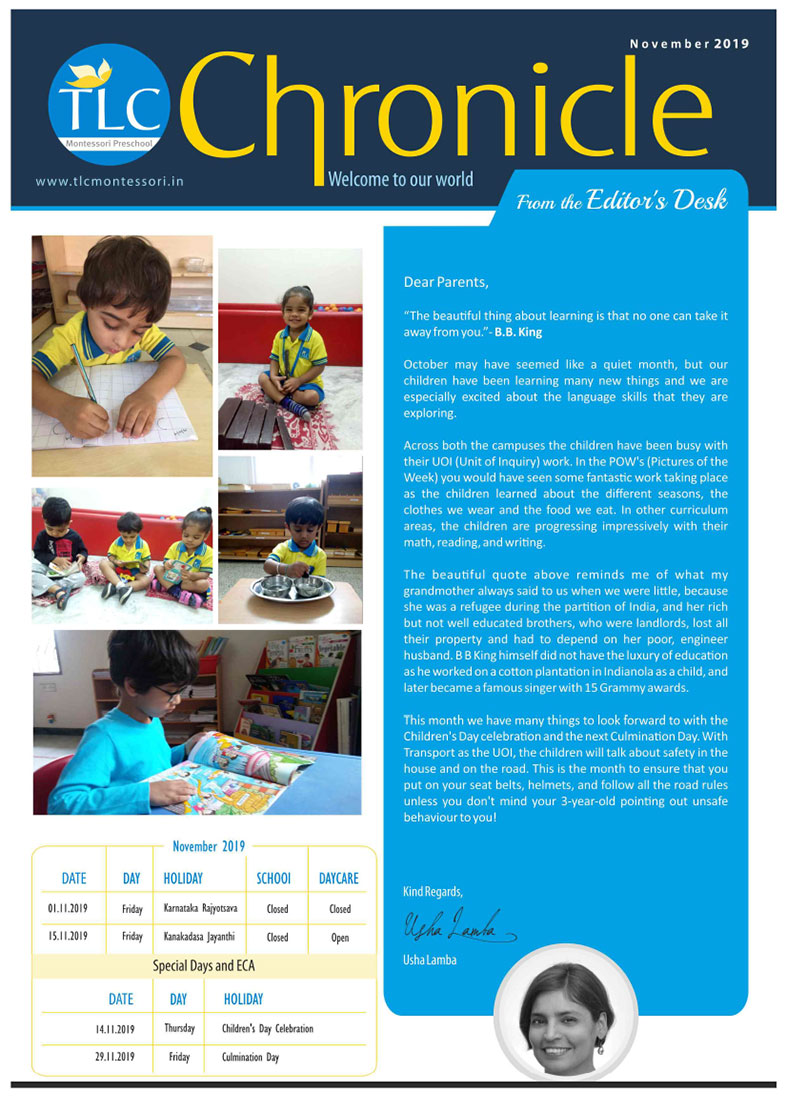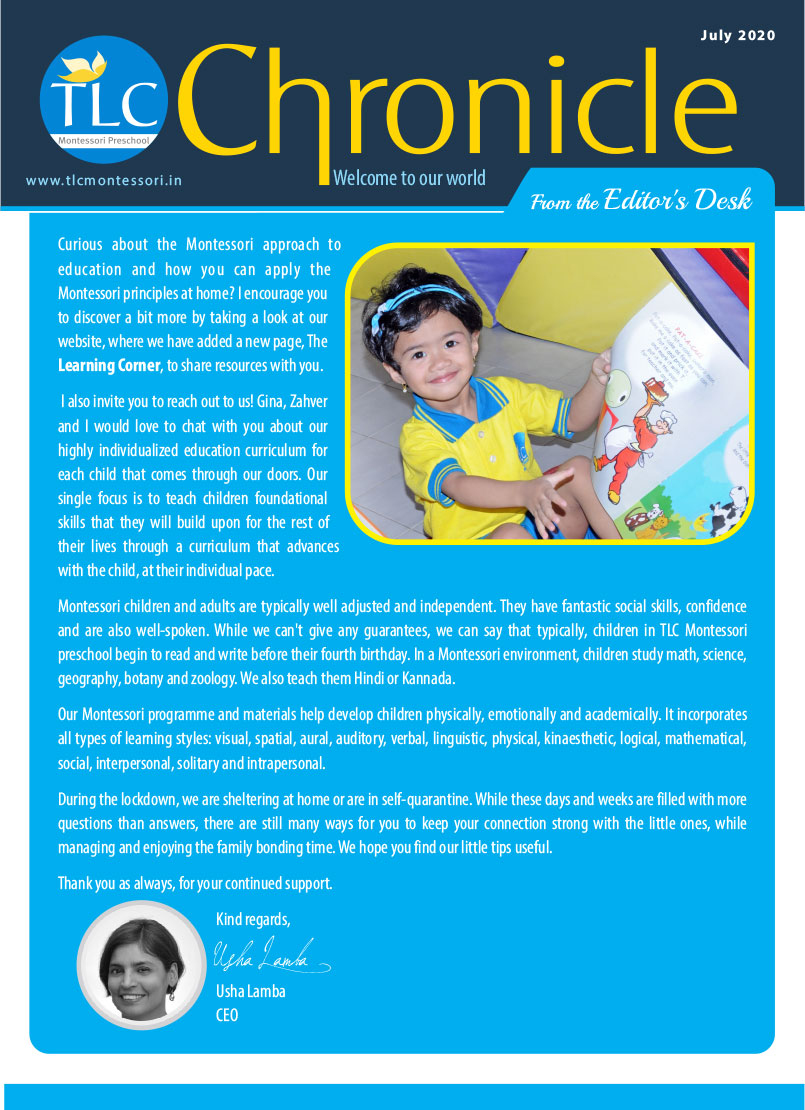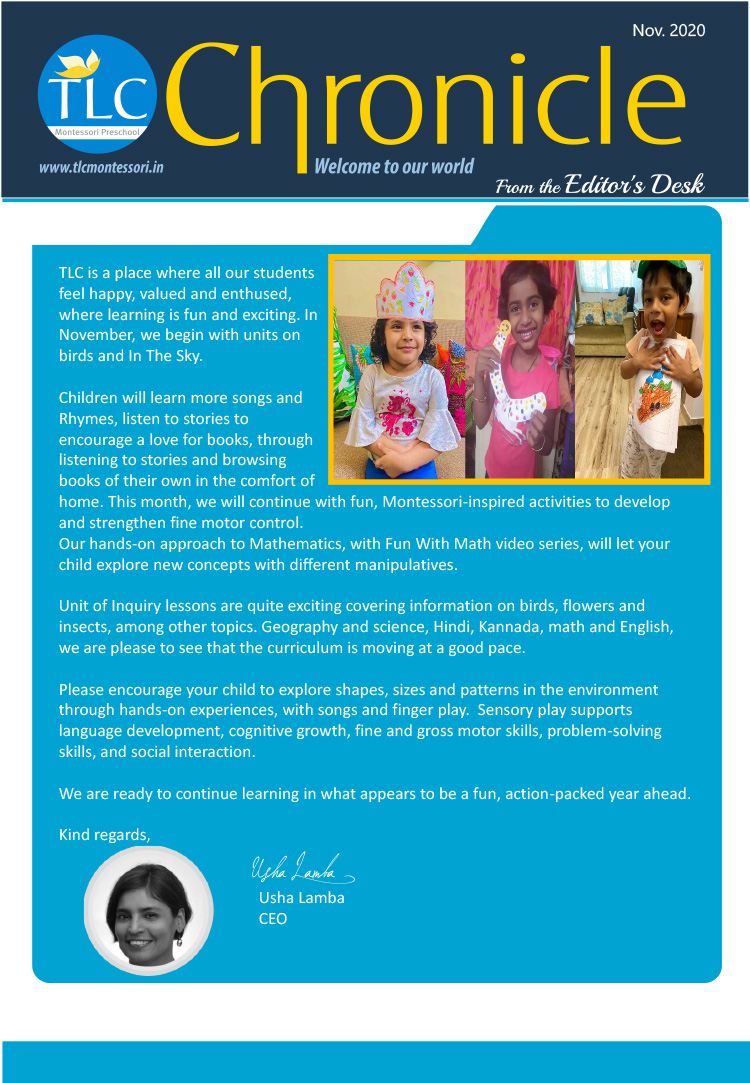 TLC Montessori, one of the best nursery schools in Bangalore, aims at learning, growing, and nurturing.