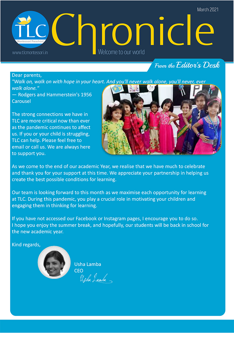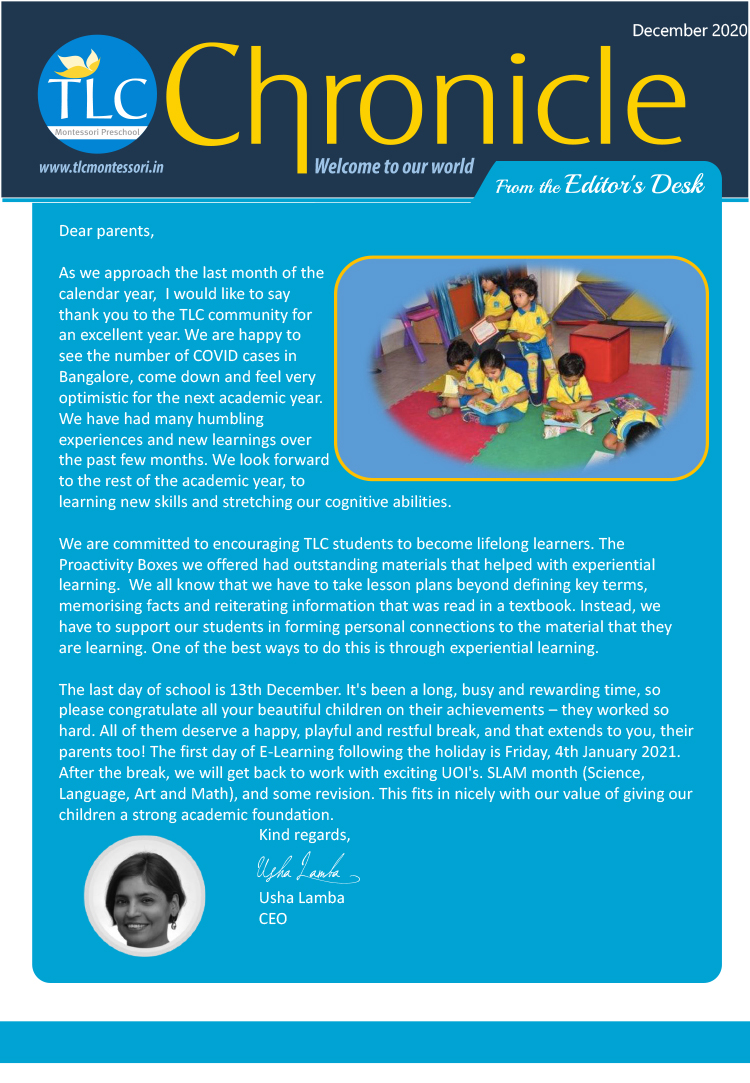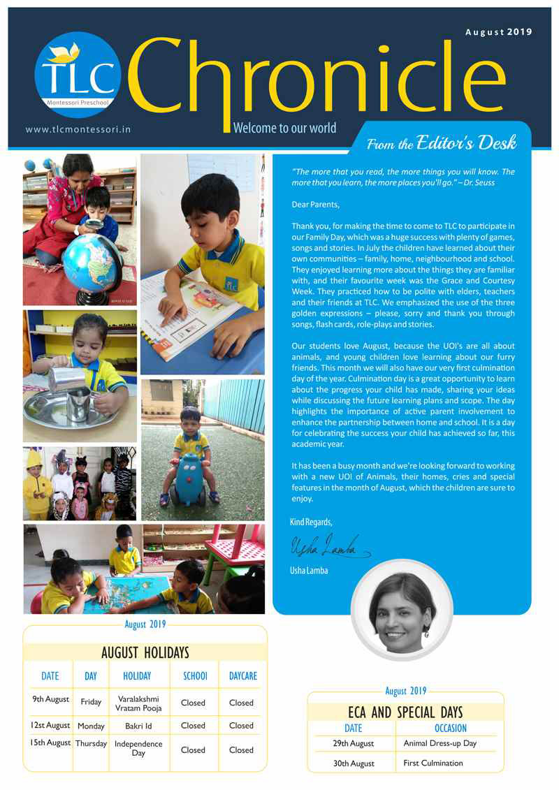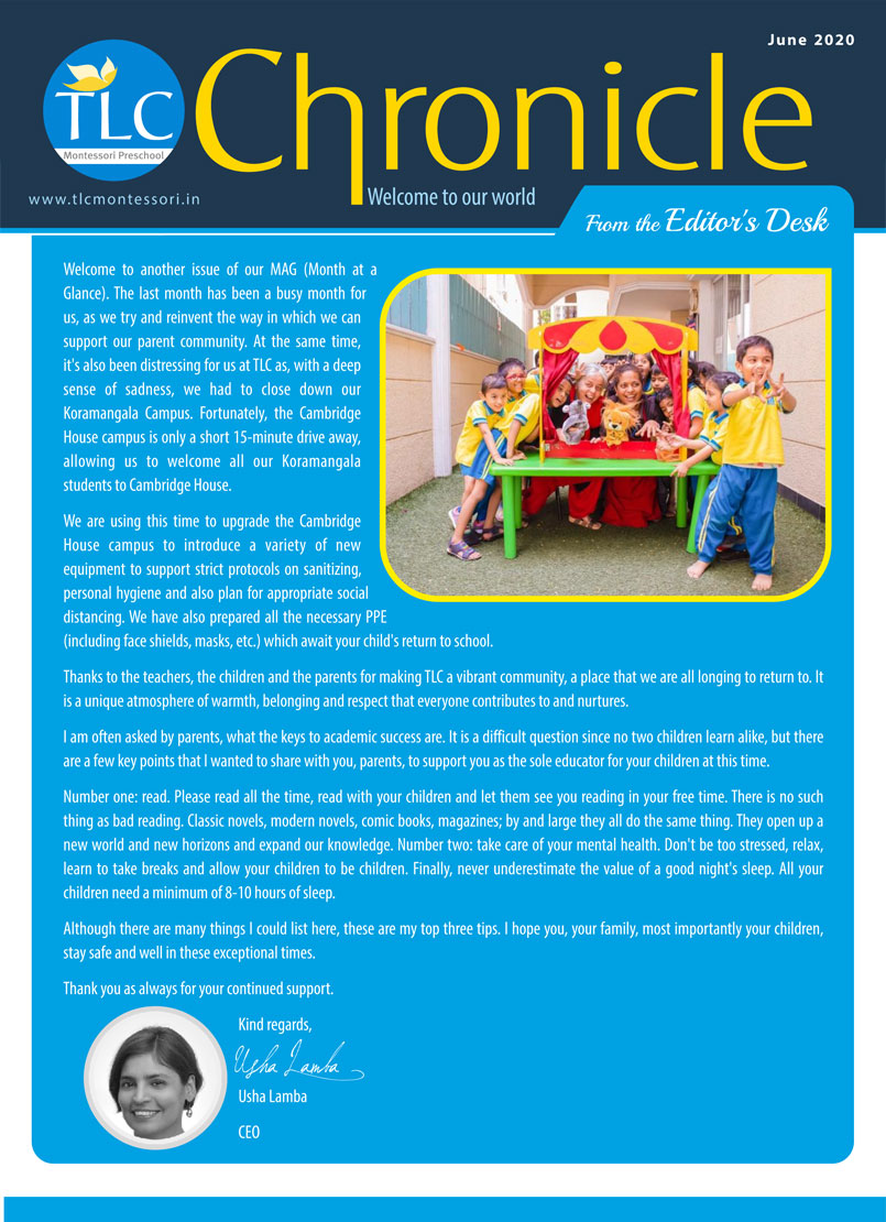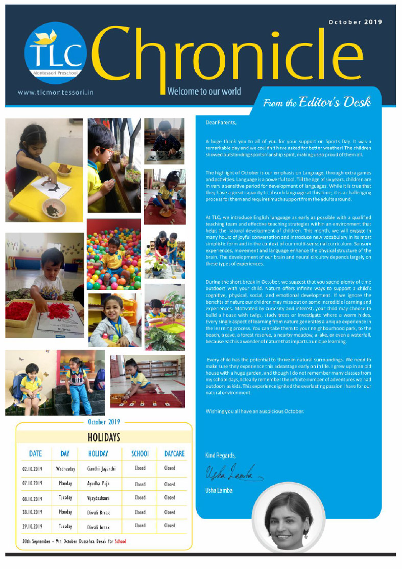 TLC Montessori, one of the best nursery schools in Bangalore, aims at learning, growing, and nurturing.