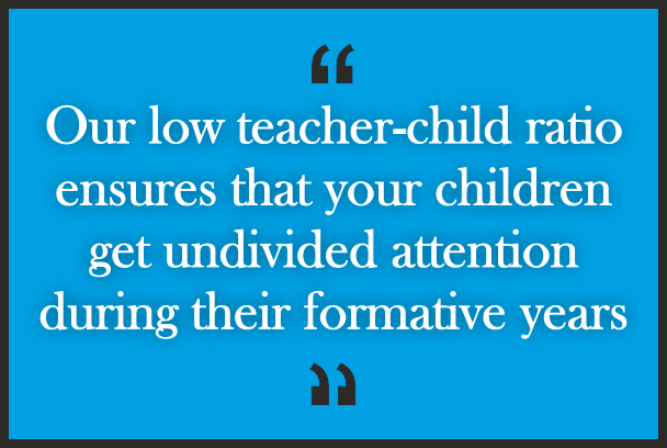 The greatest sign of success for a teacher is when she is able to say that the children are now working as though I did not exist. The team that beats at the heart of TLC makes it what it is a house of learning where education is dynamic and fun. We believe a child needs to be nurtured in a loving and caring environment with personal engagement through their formative years. Our team, with its global experience, brings a unique blend of dedication and expertise. TLC has a reputation of having some of the best preschool educators in Bangalore. We pride ourselves on the quality of our facilitators who stimulate curiosity in children and encourage them to learn new things. Above all, our teachers make learning fun. Our teacher-child ratio ensures that your child gets undivided attention.